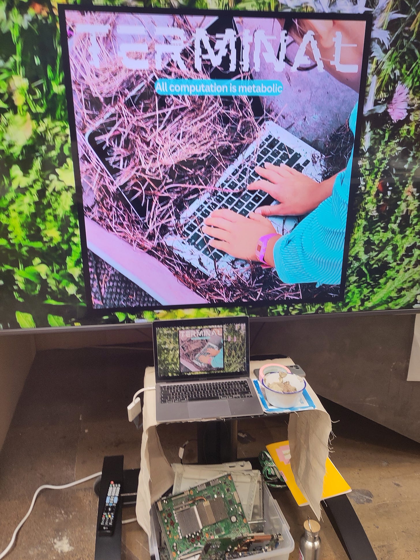 Clair Loder also had a couple of participatory / interactive peices that were great - a multi-species noticeboard for people to record and share their observations of the non-human and this peice that involved making a decorative frame using recycled e-waste to perform an acknowledgement of capitalist extraction to a mysterious man called ‘Mr.Webb’.